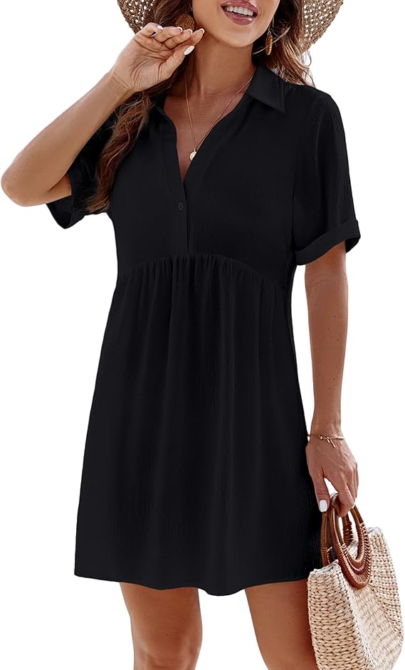 Womens Swimsuit Coverup Short Sleeve Beach Bathing Suit Cover Up Swimwear Flowy Ruffle Bikini Dress Shirt