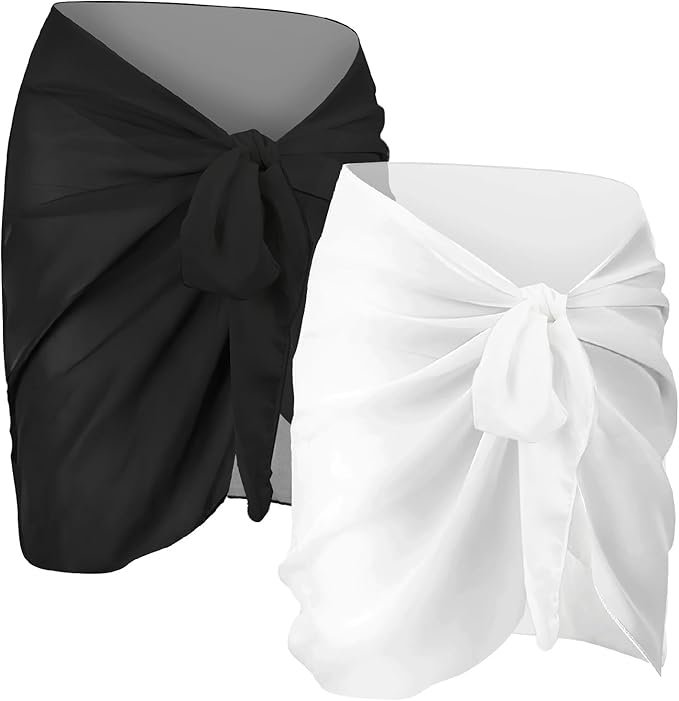 2pcs Beach Cover Up for Women, Chiffon Sarong Swimsuit Coverup for Pool, Summer Resort Wear Black White