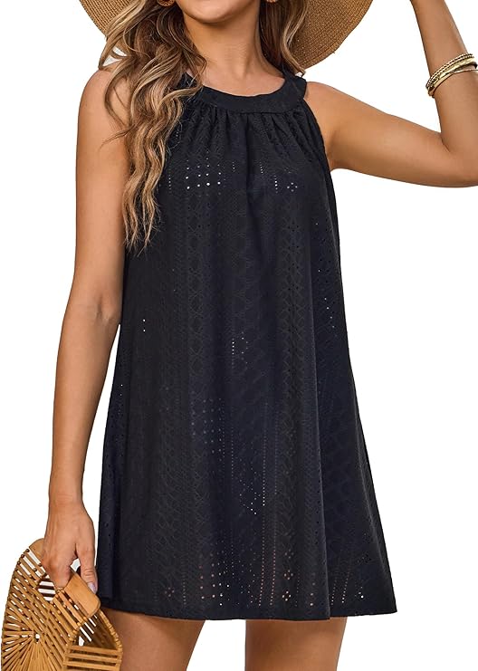 Women Crochet Mini Bikini Cover-Up Dresses Casual Summer Beach Sleeveless Short Cover Up Dress 2024