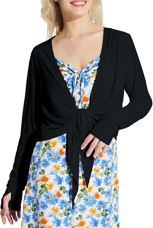 Women's 2024 UPF 50+ Cropped Cover Up Cardigan Tie Front Lightweight Summer Sun Wrap SPF Shirts Beach Outdoor
