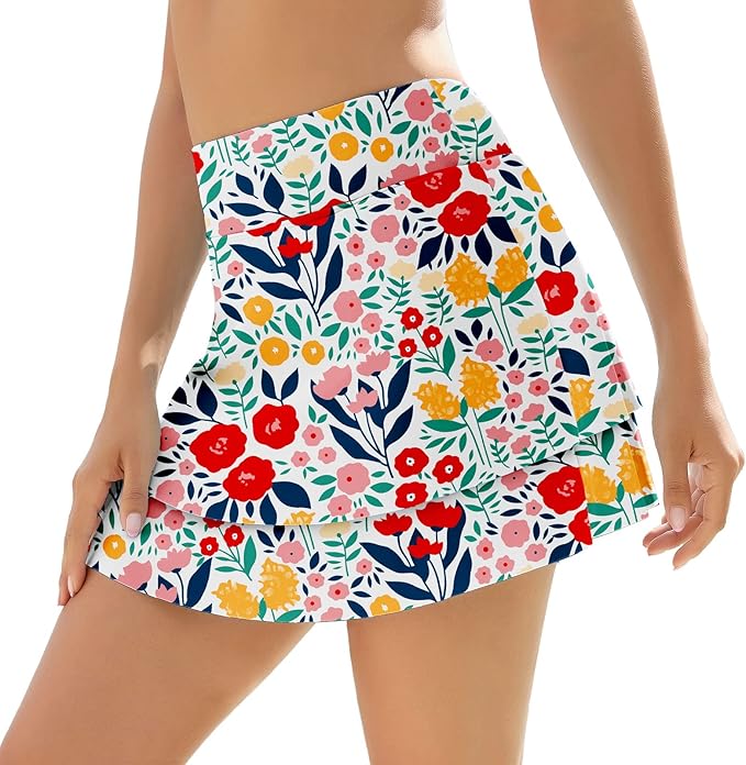 Women's Swim Skirts Swimsuit High Waist Swimming Skorts with Shorts Bikini Bottoms with Pocket Bathing Suit Bottoms