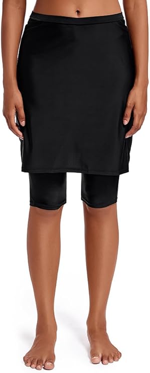 Womens Skirted Swim Capris Sun Protective UPF 50+ Swimming Tight with Attached Skirt Sport Leggings