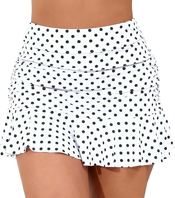 Women's High Waisted Ruched Ruffle Swim Skirt with Shorts Tummy Control Tankini Swim Skort Bikini Swimsuit Bottoms