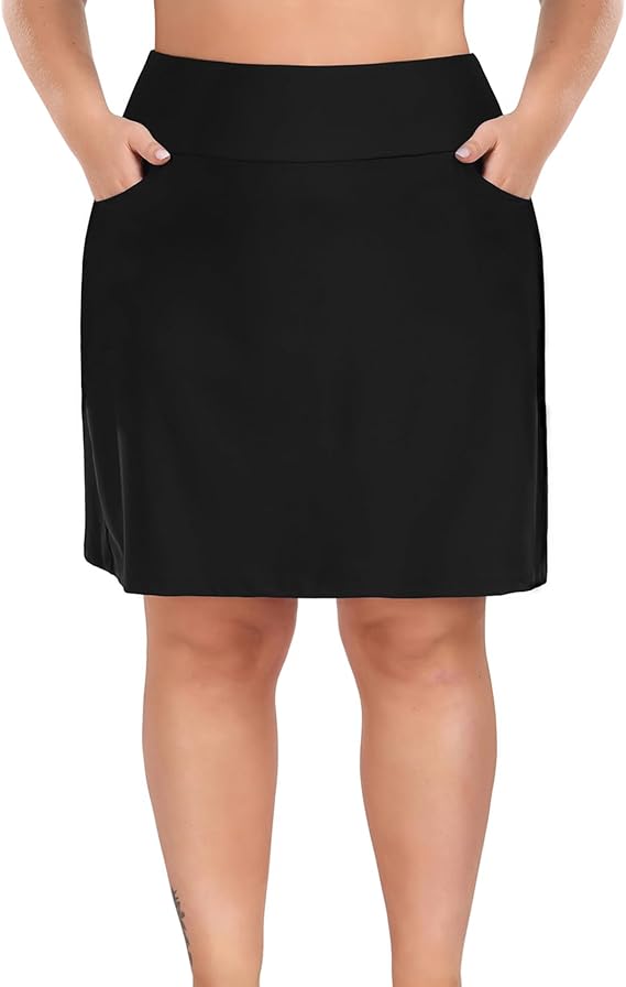 20" Womens Plus-Size Swim Skirt UPF 50+ High Waisted Skort Drawstring Bikini Bottoms with Built-in Panty