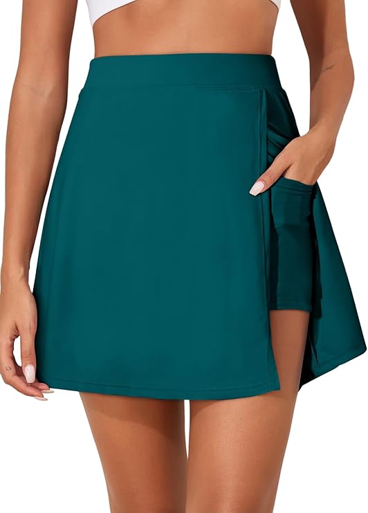 High Waisted Swim Skirt with Pockets Tummy Control Tennis Golf Mini Skirt with Shorts